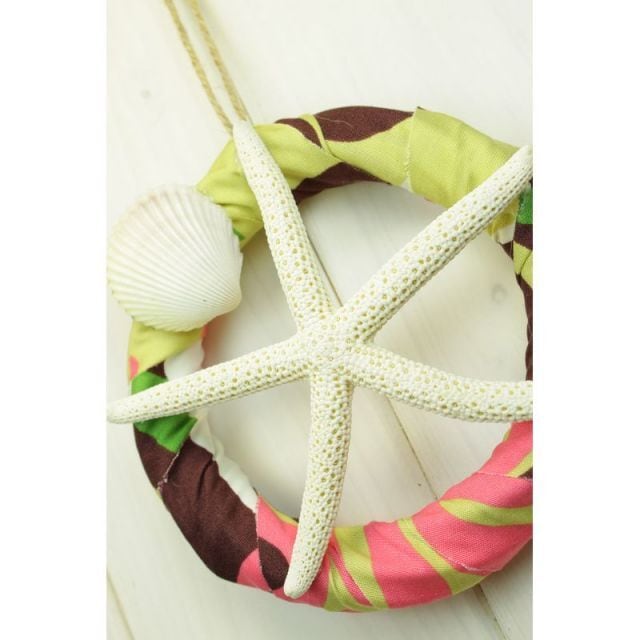 ハワイアンのアロハ生地を使用して、ハワイの海を感じるリースです。